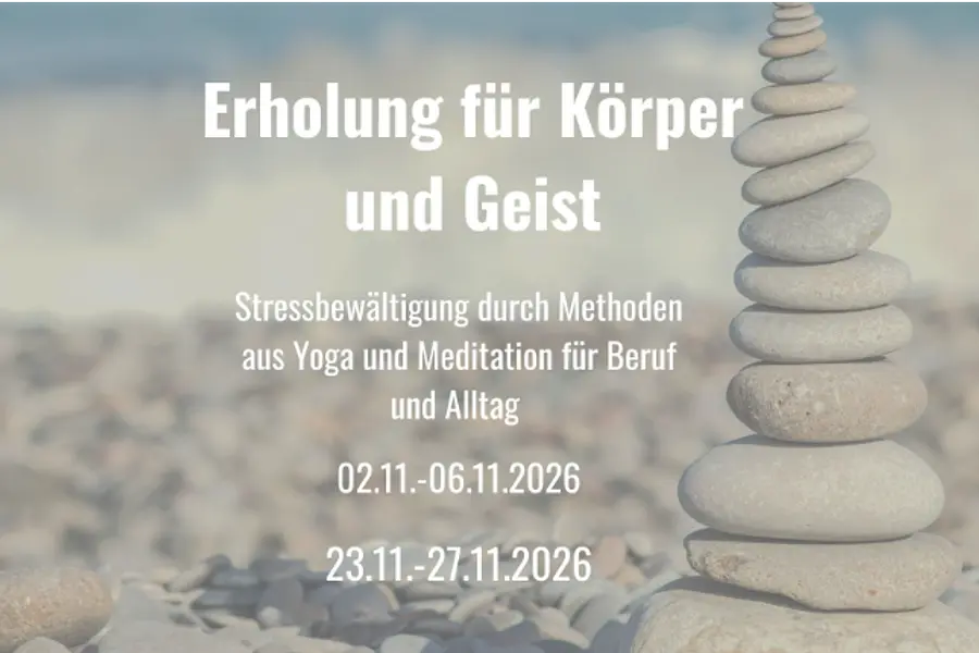 Finde in diesem fünftägigen Bildungsurlaub zurück zu mehr Ruhe, Klarheit und innerer Balance – mit gezielten Methoden aus Yoga, Meditation und Stressmanagement. In einer kleinen Gruppe erlernst du alltagstaugliche Techniken zur Entspannung, stärkst deine Resilienz und entwickelst ein tieferes Verständnis für deine eigenen Stressmuster. Theorie und Praxis greifen ineinander, sodass du nachhaltig von den Inhalten profitierst – beruflich wie privat. Ideal für alle, die sich mehr Gelassenheit und Energie im (Arbeits-)Alltag wünschen.